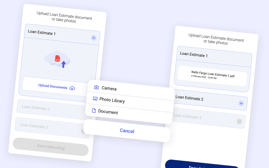 Solo designer on a 4-person team (1 PM, 2 engineers, 1 designer). I owned the entire design process from research through handoff, reporting directly to the CEO. Collaborated with a legal advisor on mortgage disclosure compliance and a backend engineer on PDF parsing constraints.